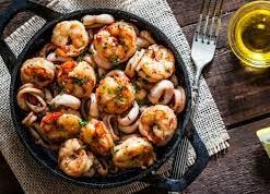 Surtido Marisco premium: Ostión, calamar, pulpo, camarón, almeja.
